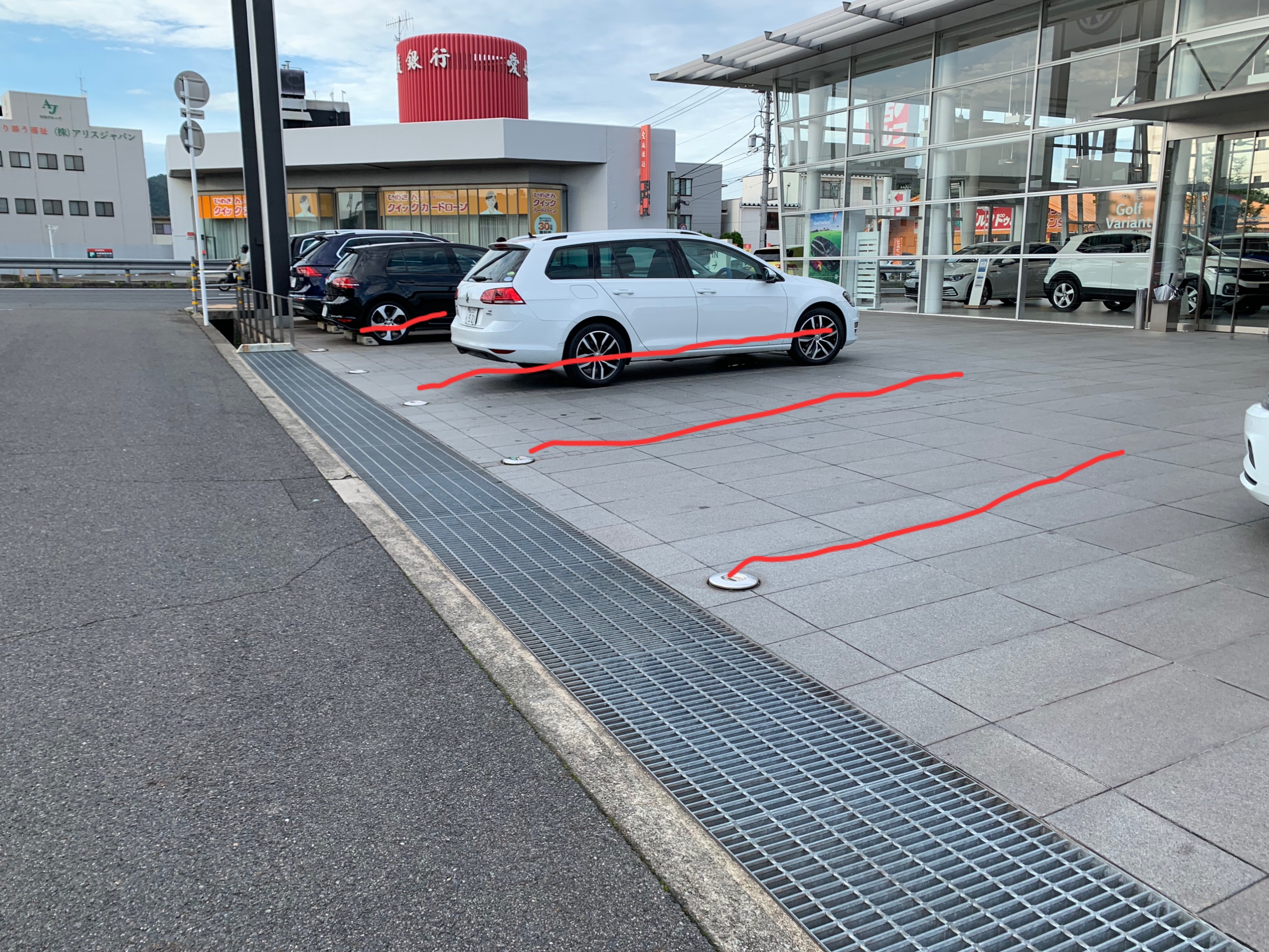 フォルクスワーゲン福山の駐車場は少し狭いため、