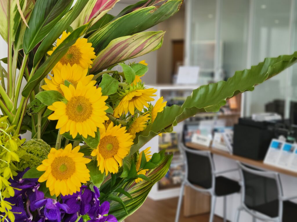 先週からショールームのお花を夏らしくひまわり🌻で飾り付けしてもらっています