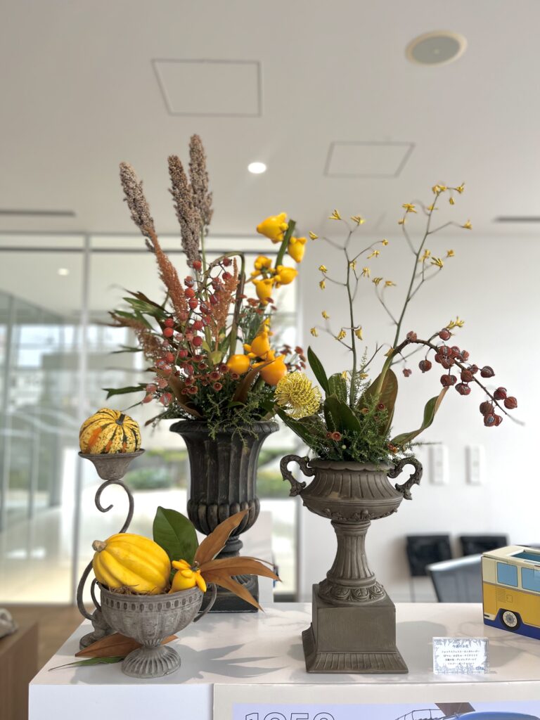 ショールームのお花も秋らしいものになっております😊