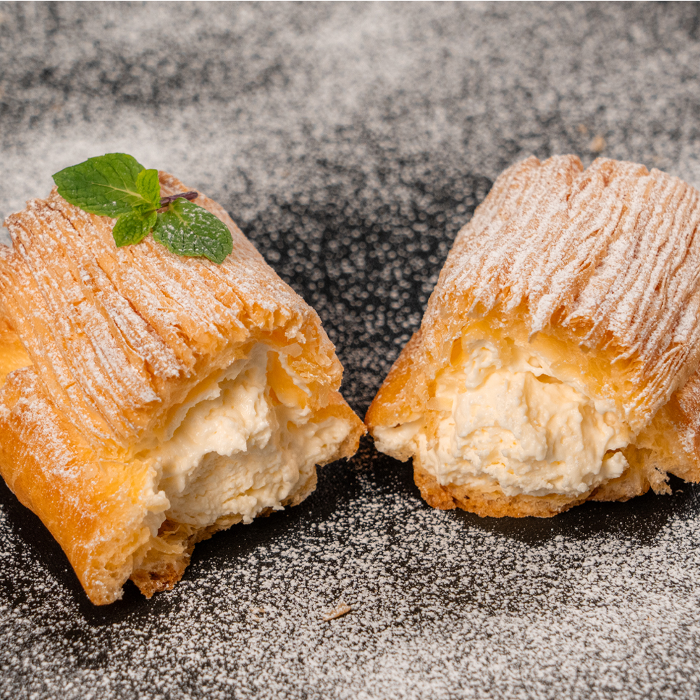 特製の生クリームとカスタードをブレンドし、たっぷり詰め込まれています。