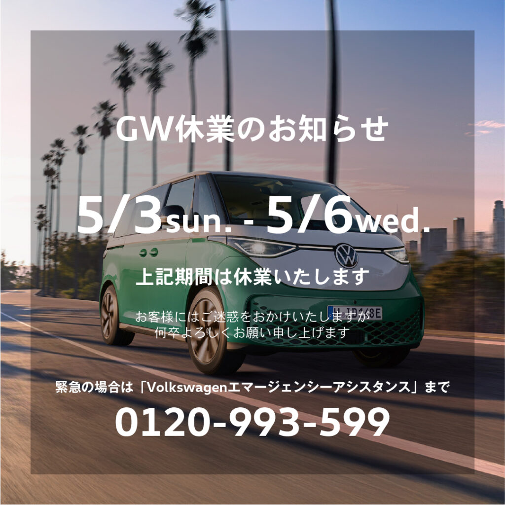 <本日はGW休業のお知らせです> VWショールームこんにちは、CA立花です🌼本日もVolkswagen福山のブログをご覧いただきありがとうございます😌 <本日はGW休業のお知らせ